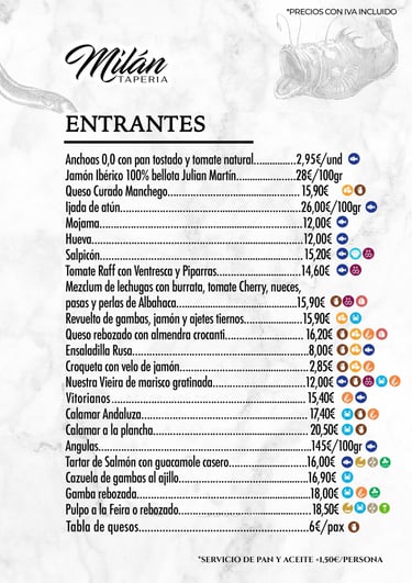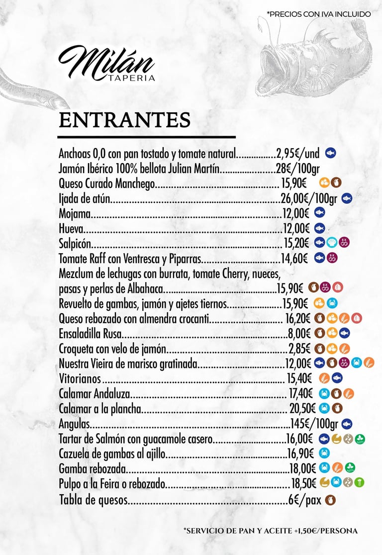 En Tapería Milán te invitamos a descubrir una cocina que combina tradición y producto de calidad. Desde pescados y mariscos frescos hasta carnes, arroces, entrantes para compartir y postres caseros, cada plato está pensado para ofrecerte una experiencia completa de sabor y autenticidad.